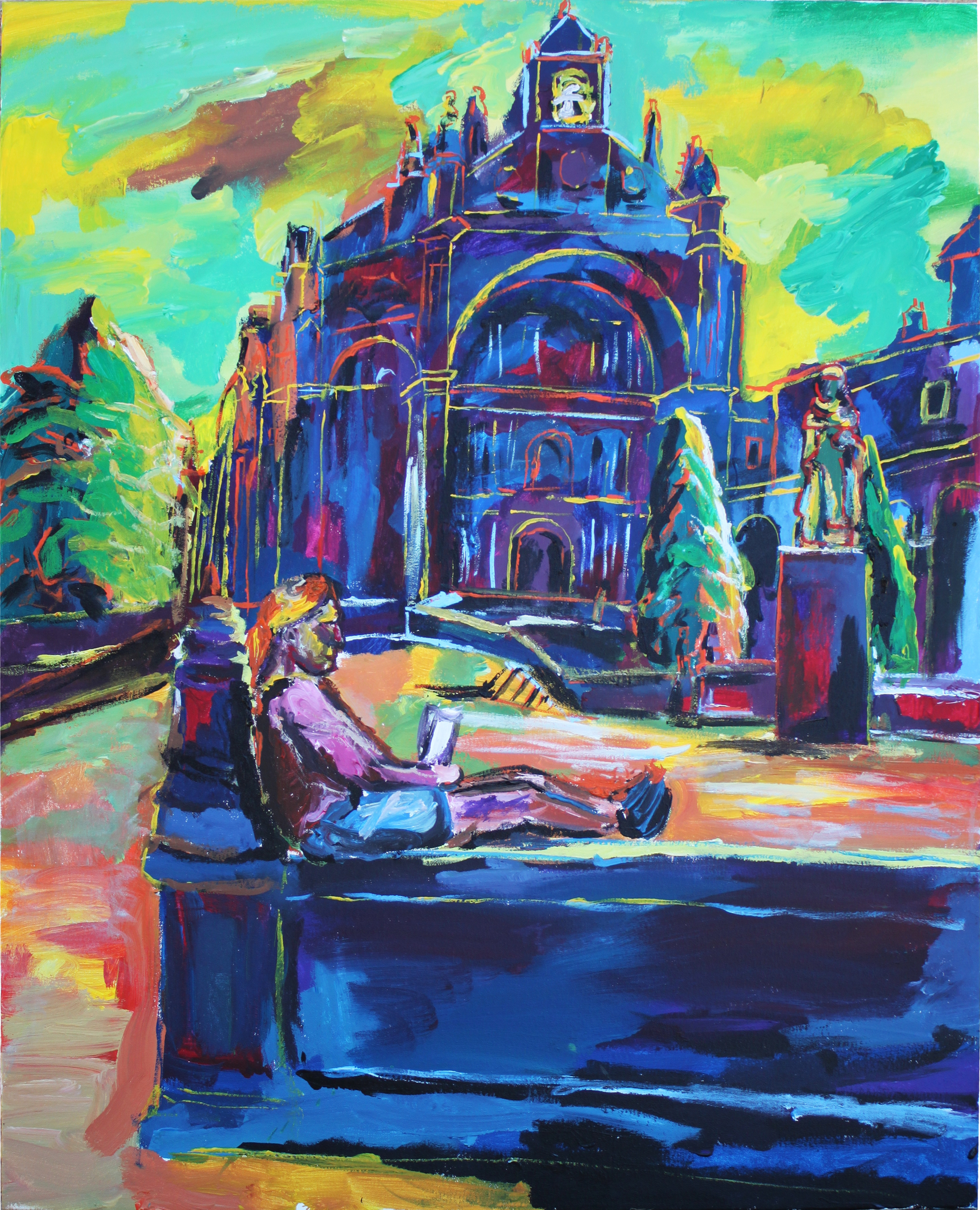Iglesia de San Esteban, Salamanca. Acrílico sobre lienzo, 81 x 100