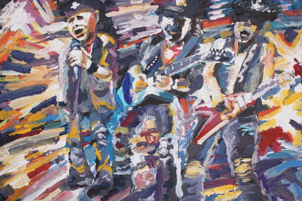 Me gusta mucho asistir a conciertos, y en esta serie de obras que empecé en 2014 he tratado de plasmar ese chute de adrenalina que transmite la música en directo: las luces de colores, los músicos dándolo todo sobre el escenario, el sonido atronador, saltos, gritos, emoción, concentración y virtuosismo…