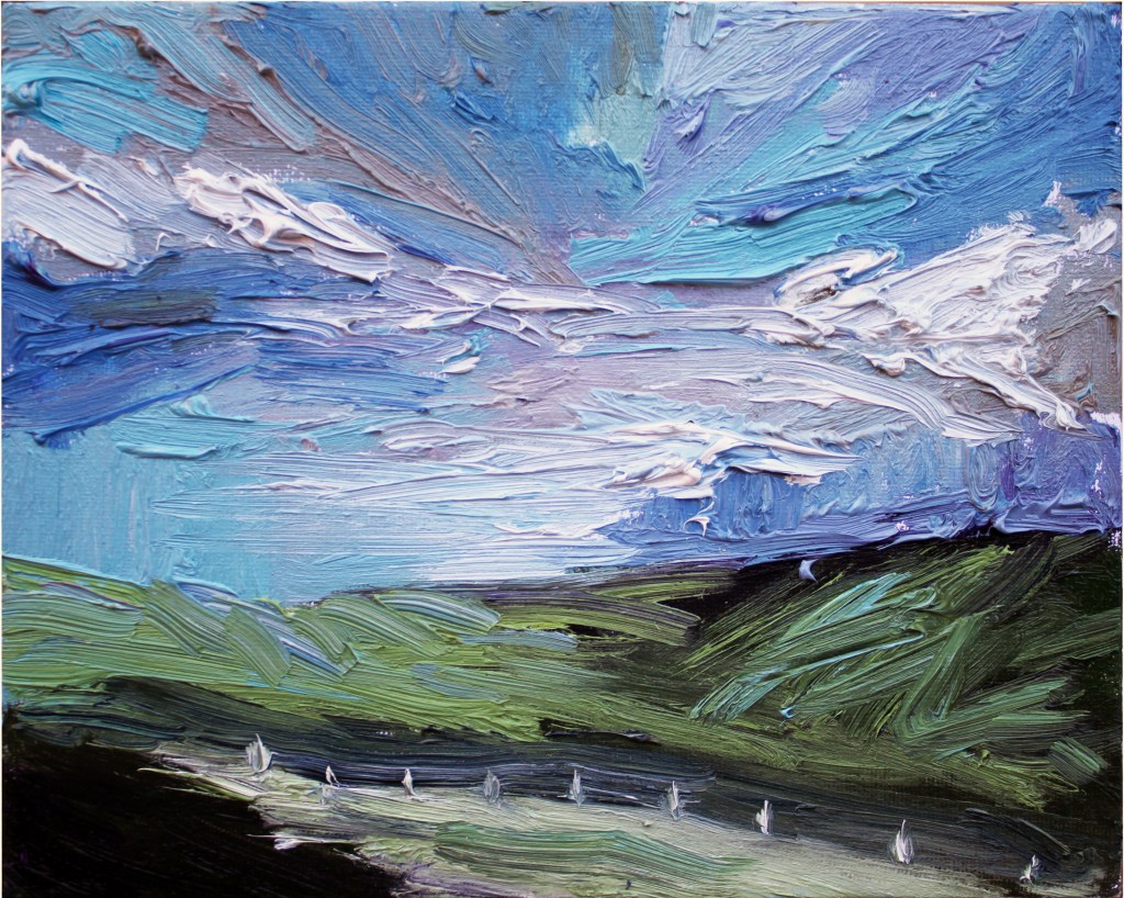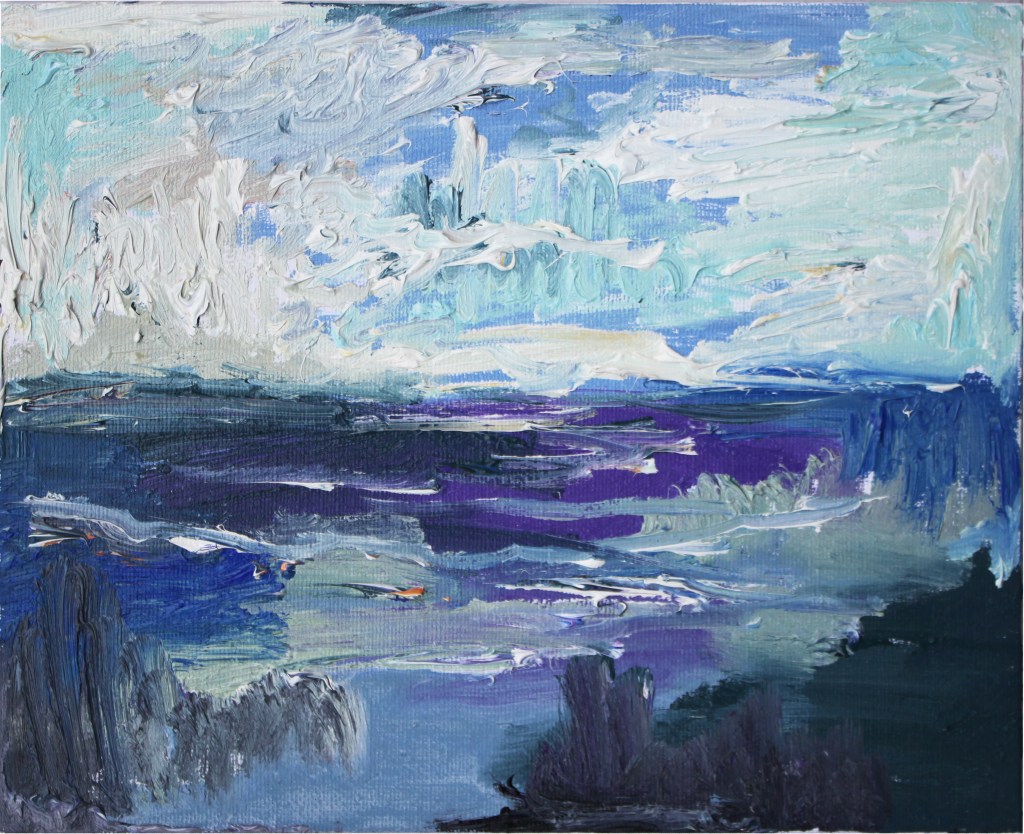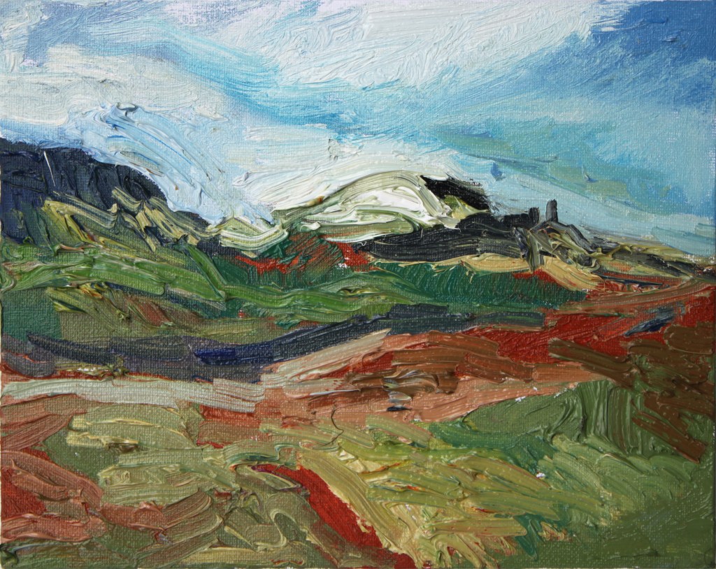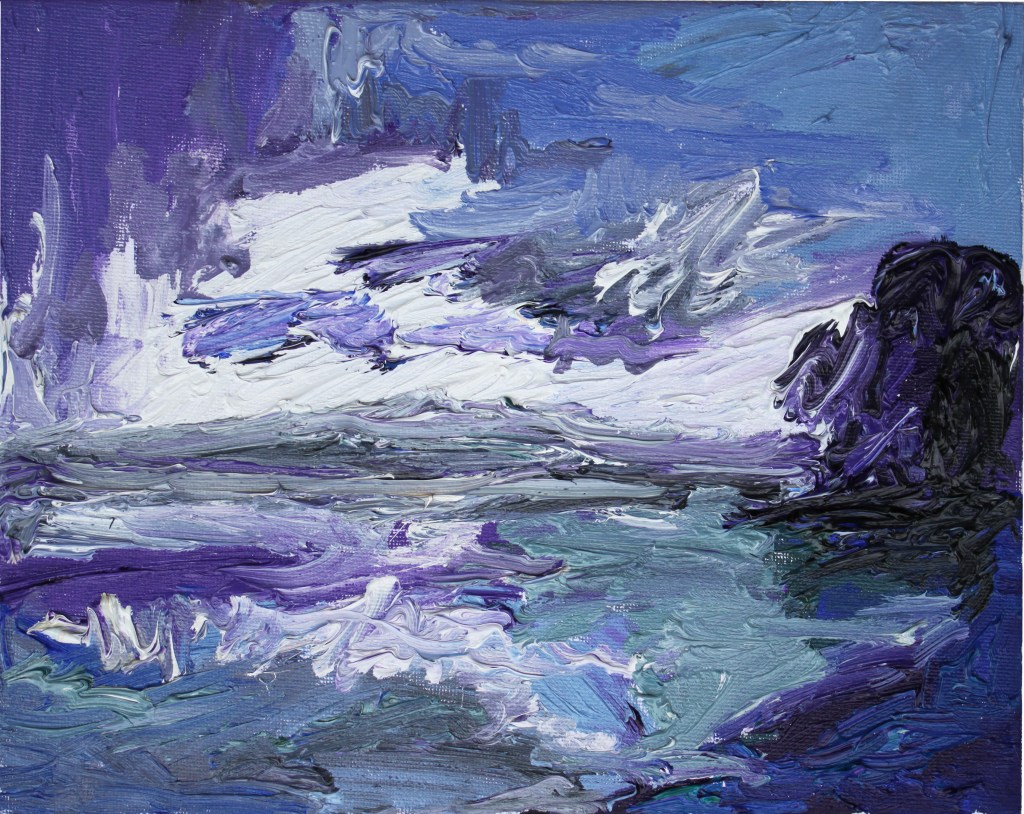 A la vuelta, dediqué varios meses a esta serie de pinturas dedicadas a este fascinante lugar, tratando de plasmar su característica inestabilidad meteorológica que tan pronto trae sol como nubarrones a punto de descargar.
