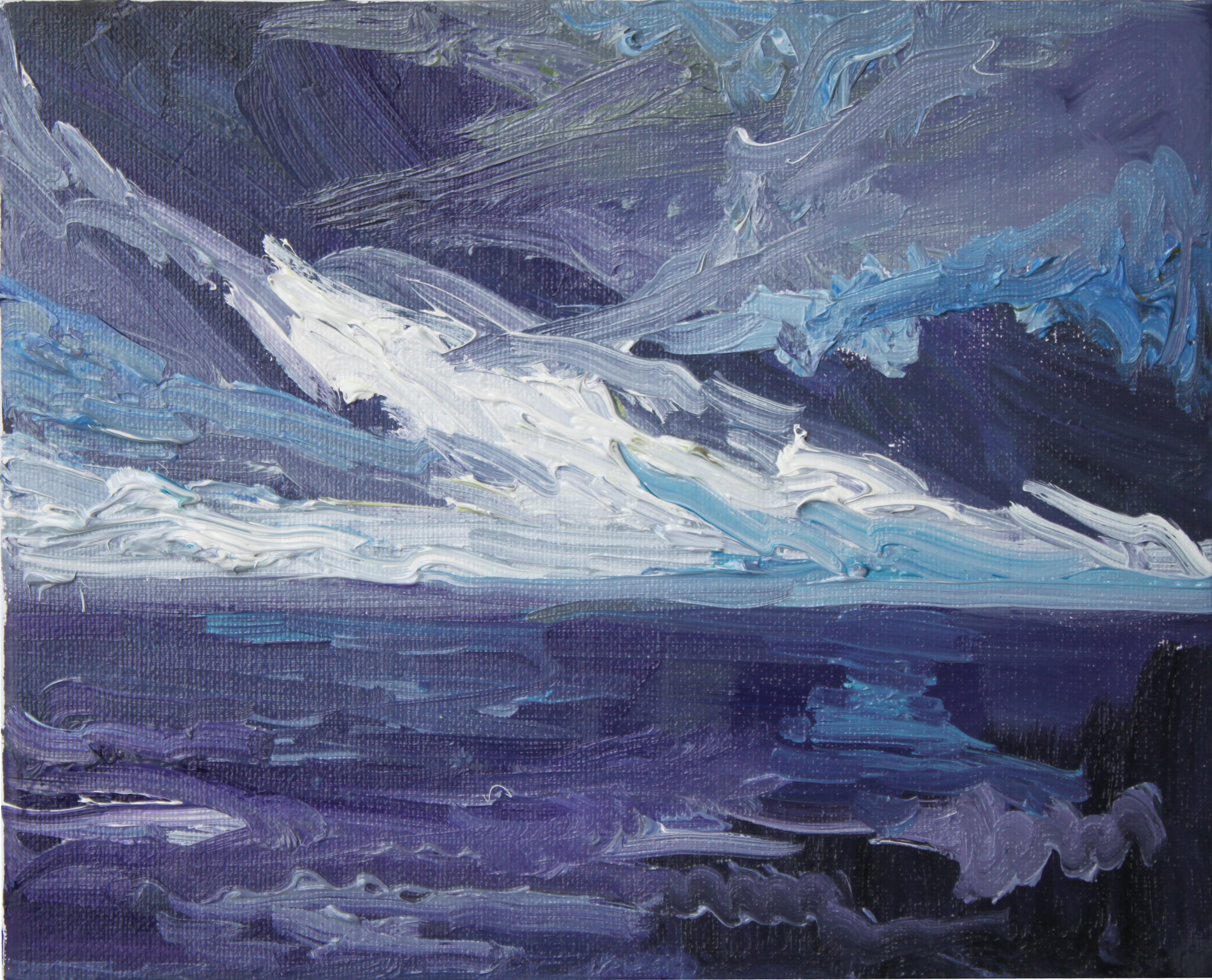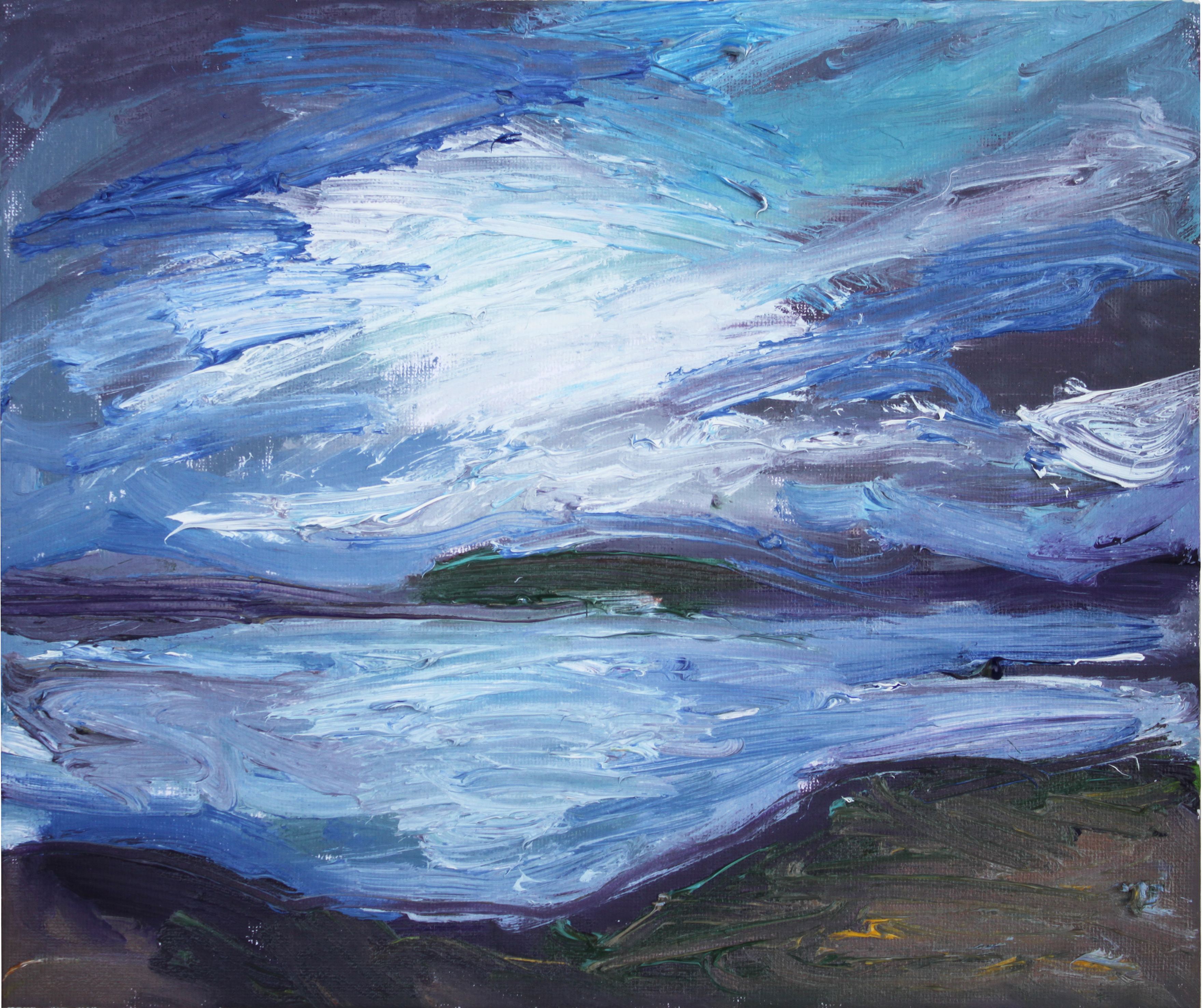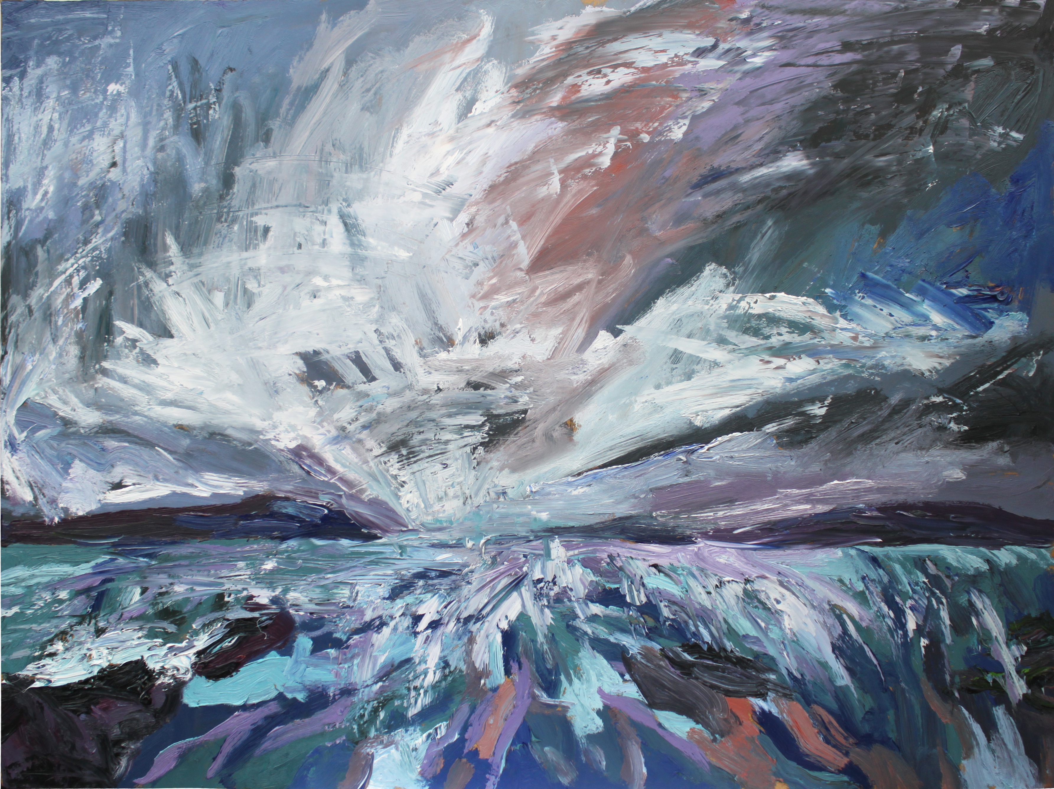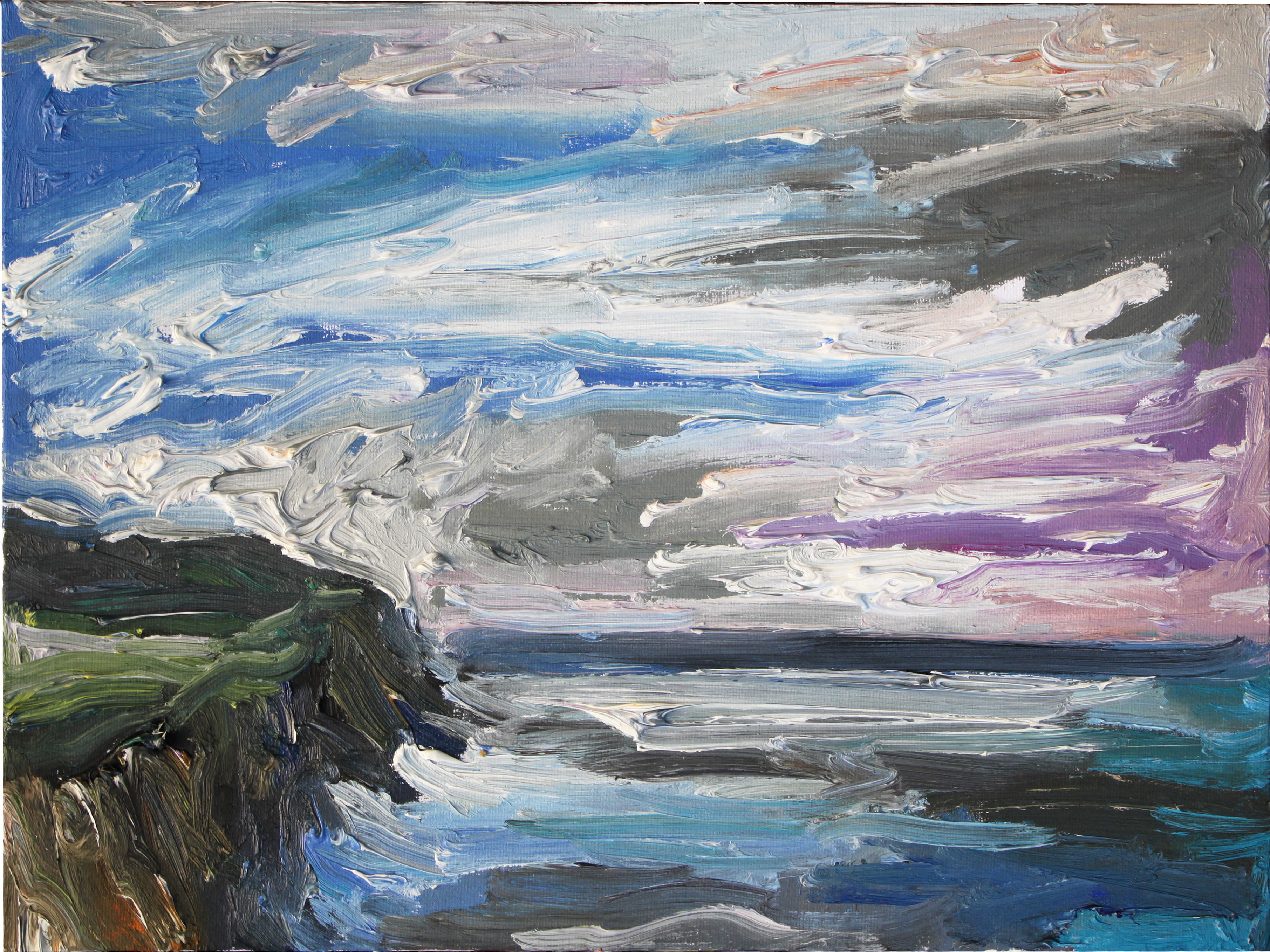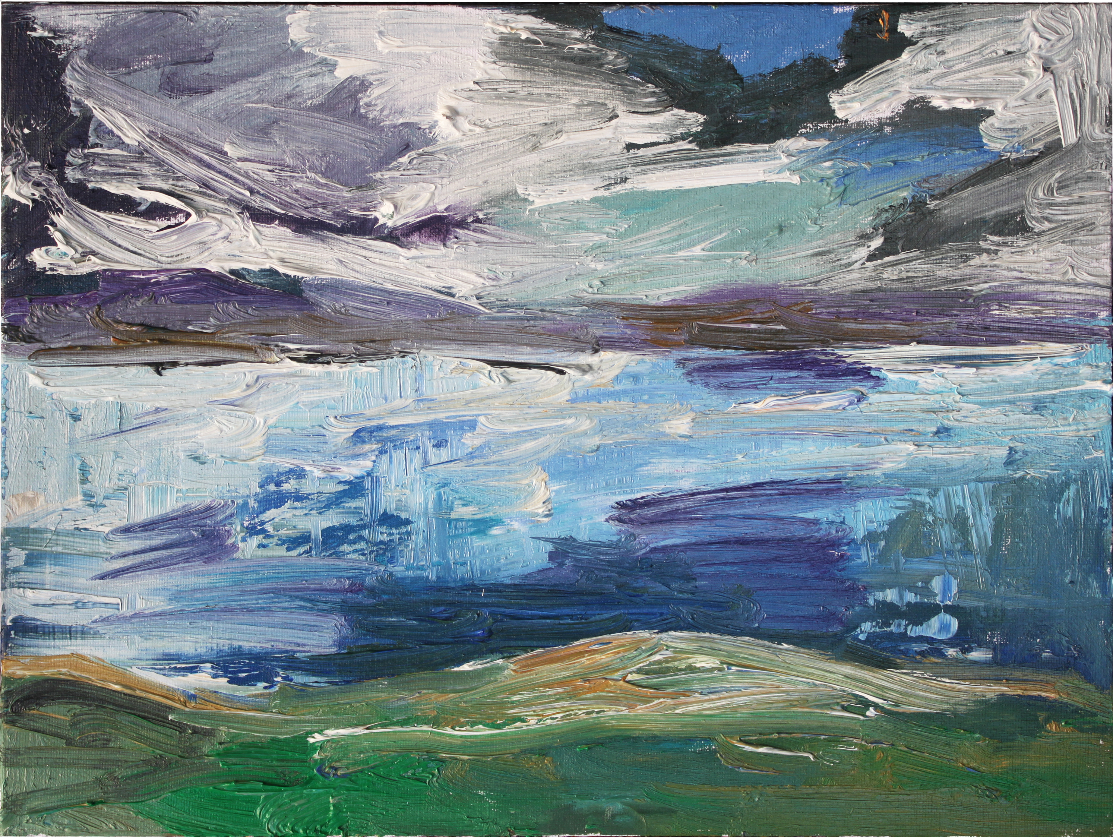 A la vuelta, dediqué varios meses a esta serie de pinturas dedicadas a este fascinante lugar, tratando de plasmar su característica inestabilidad meteorológica que tan pronto trae sol como nubarrones a punto de descargar.